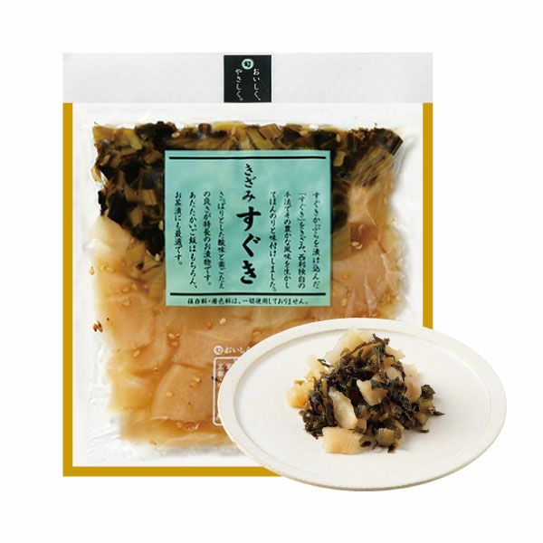 | 原材料 | すぐきかぶら、漬け原材料(醤油、発酵調味料、砂糖、食塩、ごま)/ 調味料(アミノ酸)、酸味料 、(一部に小麦・大豆・ごまを含む) |
