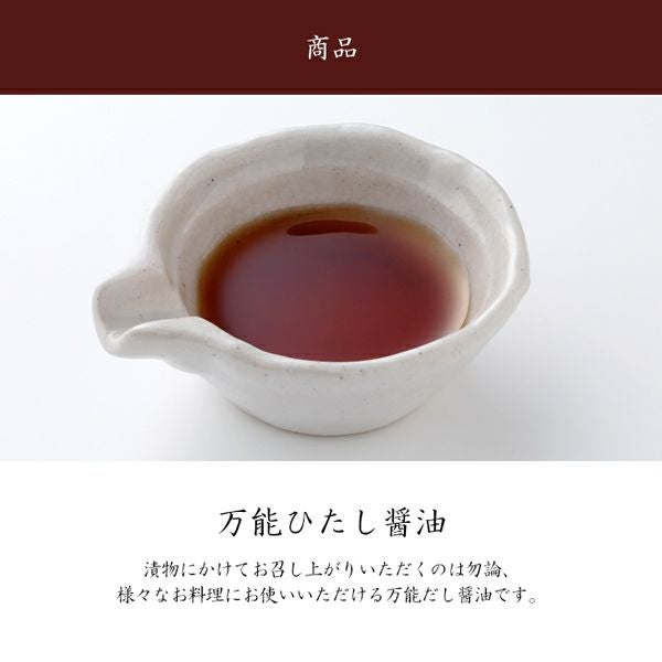 | 原材料 | しょうゆ(小麦・大豆を含む)(国内製造)、砂糖、アミノ酸液、水あめ、ぶどう糖果糖液糖、食塩、かつお節エキス、還元水あめ、かつおエキス、こんぶ調味エキス、酵母エキス/ アルコール |
