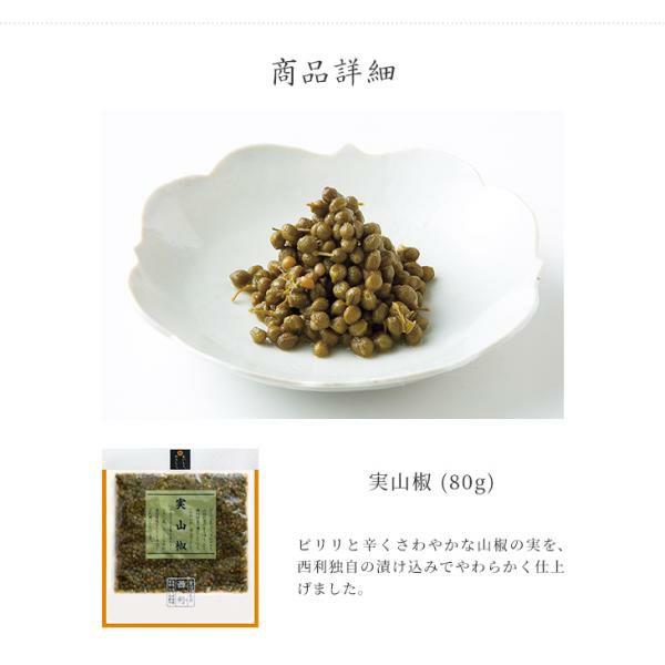 原材料 | 実山椒、漬け原材料(アミノ酸液、食塩)/ 調味料(核酸) 、(一部に大豆を含む) |