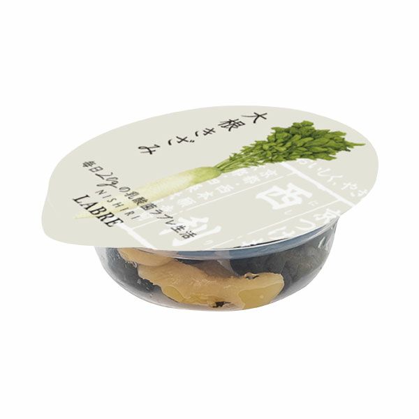 | 原材料 | 大根、胡瓜、しその実、生姜、漬け原材料(発酵調味料、醤油、醸造酢、カツオ節風味調味料、食塩、ラブレ乳酸菌液)/ 調味料(アミノ酸)、ソルビトール、香料 、(一部に小麦・大豆・ゼラチンを含む) |