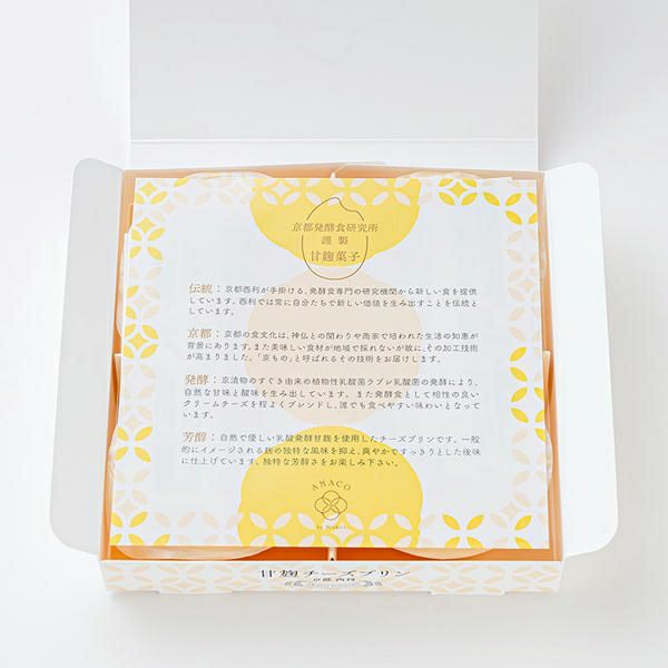 甘麹をラブレ乳酸菌で発酵させた「乳酸発酵甘麹AMACO」を使用したチーズプリンです。 ヨーグルトのような爽やかで甘酸っぱい風味が特徴です。 フルーツソースなどをかけてもおいしくお召し上がりいただけます。