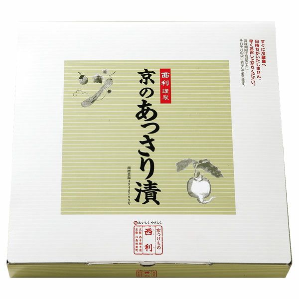常に高品質のものづくりをめざしています。西利の京つけものは、国内産の優れた野菜のみを、保存料や着色料を一切使用せずに漬け込んでいます。漬け込み作業を支える「京つけもの西利 洛西工場」「京つけもの西利 あじわいの郷工場」は最先端の施設で、徹底した衛生管理体制を確立。クリーンルーム作業室、用途別大型冷蔵庫など設備も万全です。