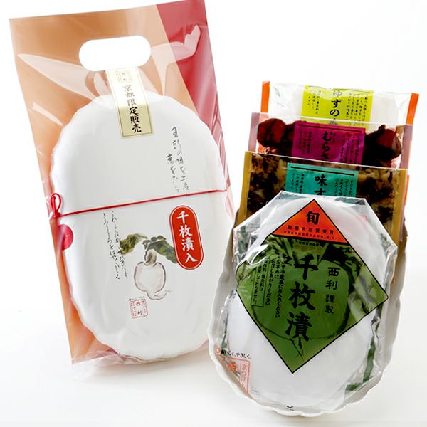 千枚漬70g、赤しそむらさきの50g、味すぐき40g、山里の香り40g