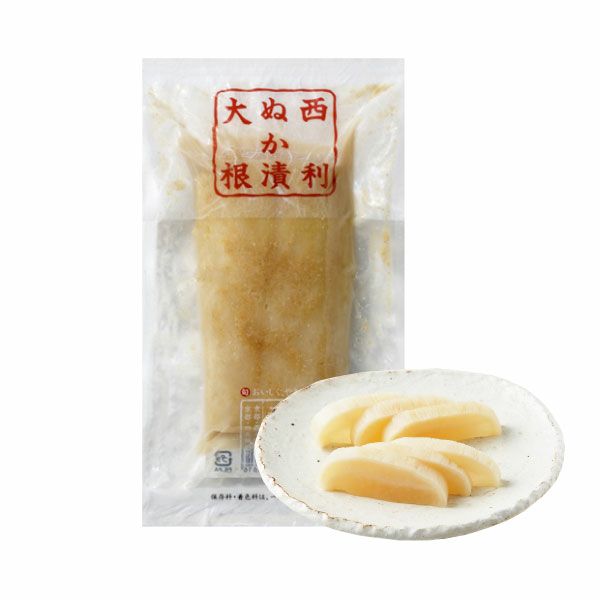 原材料 | 大根、漬け原材料(米ぬか、調味酢、糖類(砂糖、オリゴ糖)、発酵調味料、食塩、昆布エキス、昆布)/ 調味料(アミノ酸)、ソルビトール、酸味料 |
