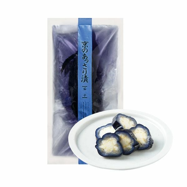 絶妙なおいしさの茄子を丸ごとあっさりと漬けた、なす紺色も爽やかな食欲をそそるお漬物です。