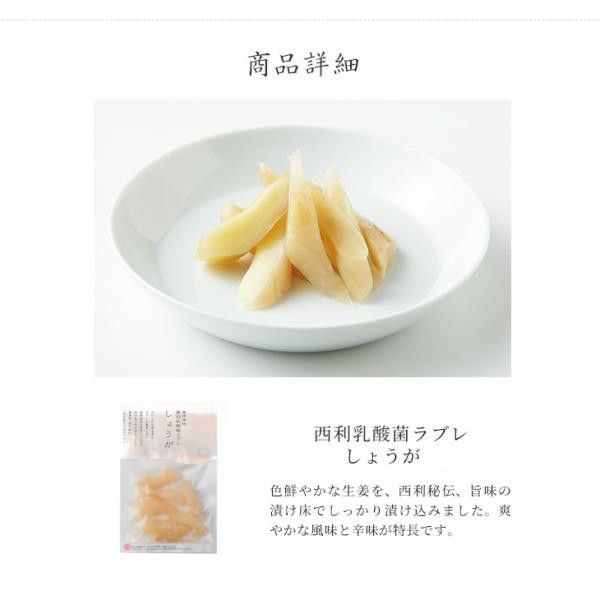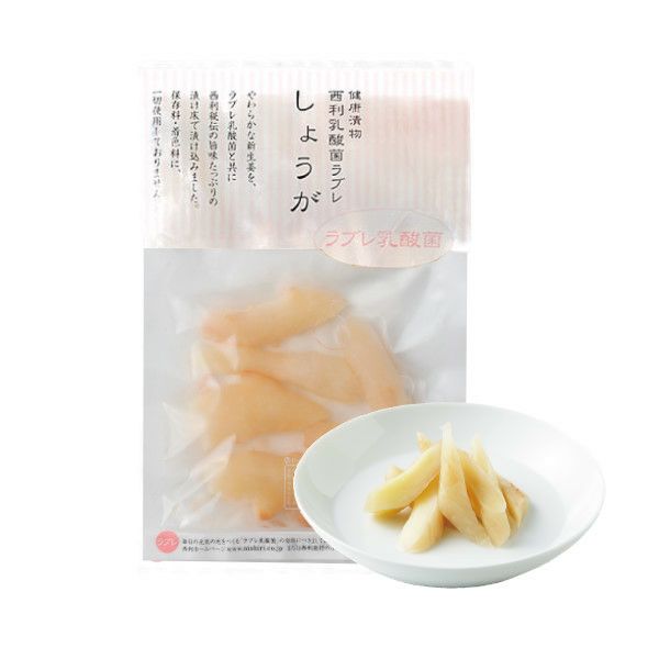 原材料 | 生姜、漬け原材料(砂糖、食塩、発酵調味料、ラブレ乳酸菌液、醸造酢、昆布エキス)/ 酸味料、調味料(アミノ酸等)、酒精、 (一部に大豆を含む) |