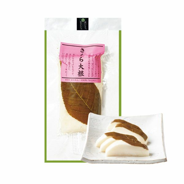 | 原材料 | 大根、漬け原材料(調味酢、糖類(砂糖、オリゴ糖)、発酵調味料、食塩、桜の葉、昆布エキス、昆布)/ 調味料(アミノ酸)、ソルビトール、酸味料 |