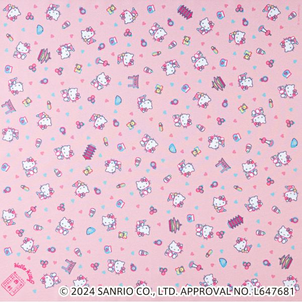 ハローキティと京都の名所が描かれたオリジナルデザインの風呂敷に、伝統の京漬物を包みました。