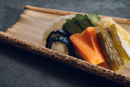 あてには定番の「ぬか漬」で、一日を締めくくるひと時をゆっくりのんびり楽しんで。