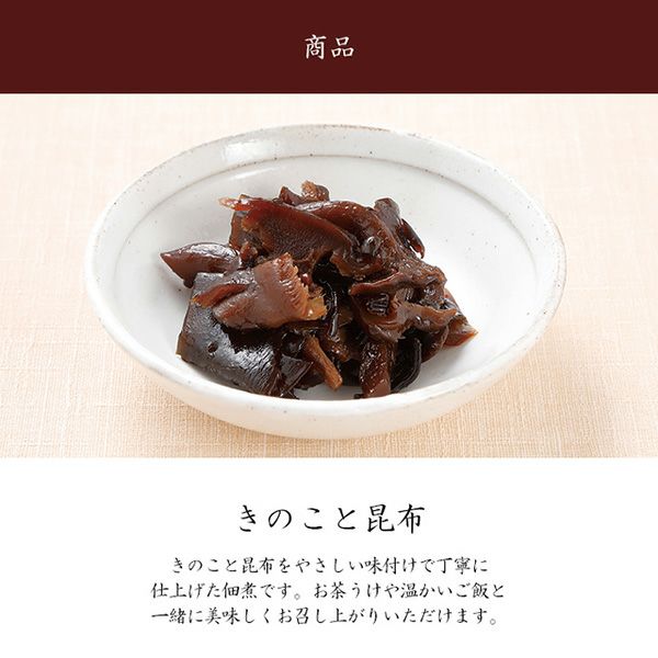 原材料 | 醤油、ひらたけ、砂糖、しいたけ、昆布、きくらげ、たん白加水分解物、還元麦芽糖、還元水あめ、さんしょう、酵母エキス、梅酢、 (一部に小麦・大豆を含む) |