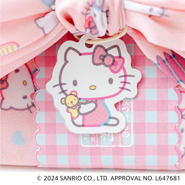 ハローキティと京都の名所が描かれたオリジナルデザインの風呂敷に、伝統の京漬物を包みました。