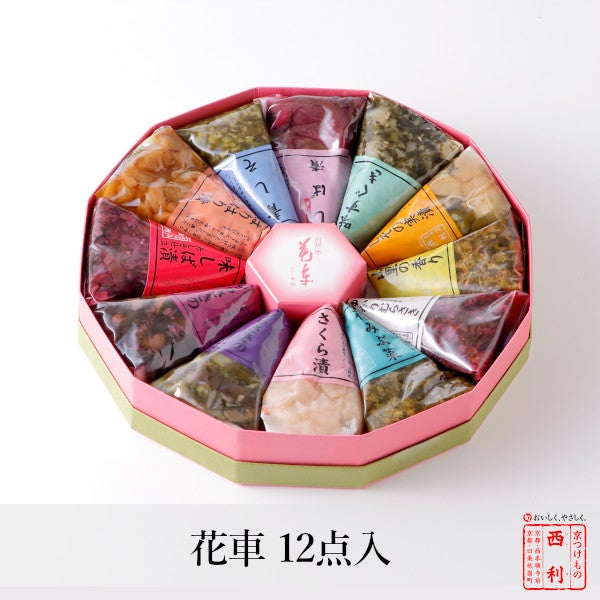 赤しそむらさきの80g、青しそむらさきの50g、味しば漬 赤しそ仕立て40g、山里の香り70g、味すぐき70g、ゆかりむらさき70g、しその実漬40g、はりはり漬80g、花みぶ菜70g、しば漬50g、さくら漬40g、青しそ80g