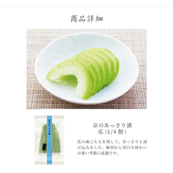 | 原材料 | 瓜、漬け原材料(調味酢、糖類(砂糖、オリゴ糖)、発酵調味料、食塩、昆布エキス、昆布)/ 調味料(アミノ酸)、ソルビトール、酸味料 |