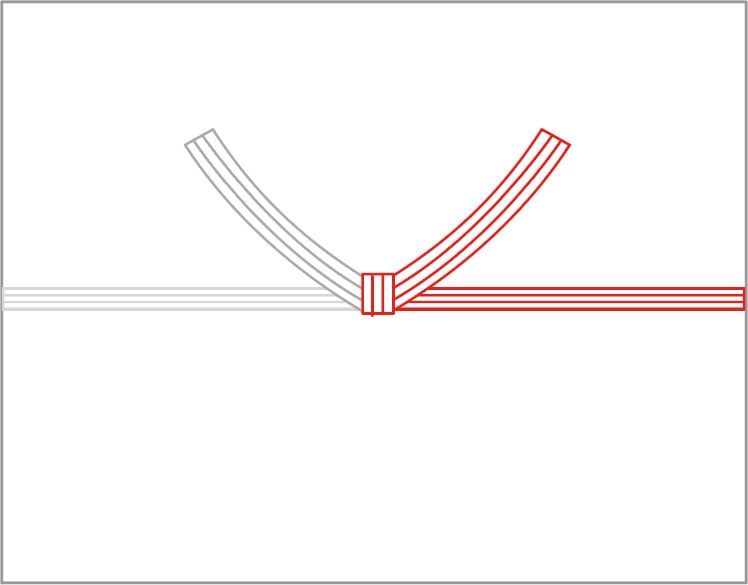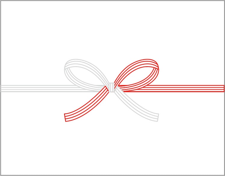 何度でも結び直せることから、何度あっても縁起がいいお祝い事や御礼に用います。「紅白蝶結び」は基本的に短冊熨斗をお付けします。